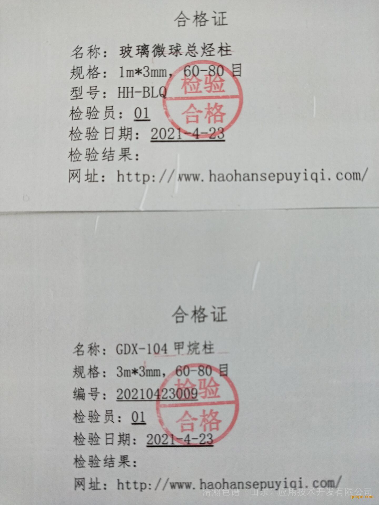 甲烷柱:长3m,内径(外径)3mm,英制1/8的不锈钢柱,填充GDX-104多孔微球载体60-80目。