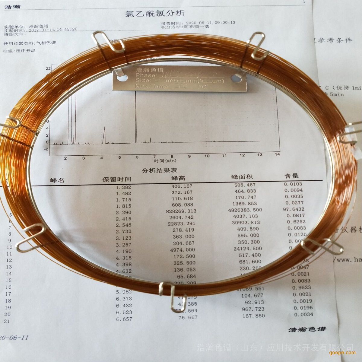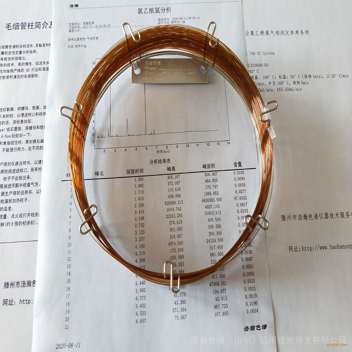 浩瀚色谱(山东)应用技术开发有限公司,与时俱进,采用研发的新技术,直接进样分析工业 氯乙酰氯的纯度及杂质的含量,柱效高,分离好,结果准确可靠。